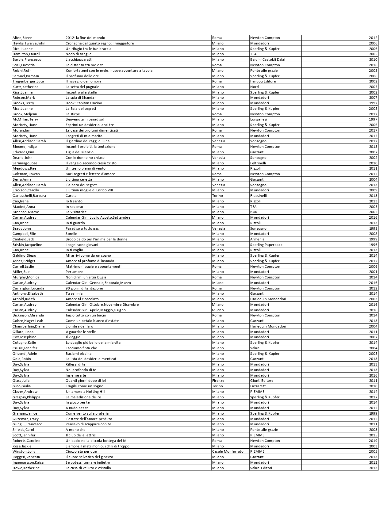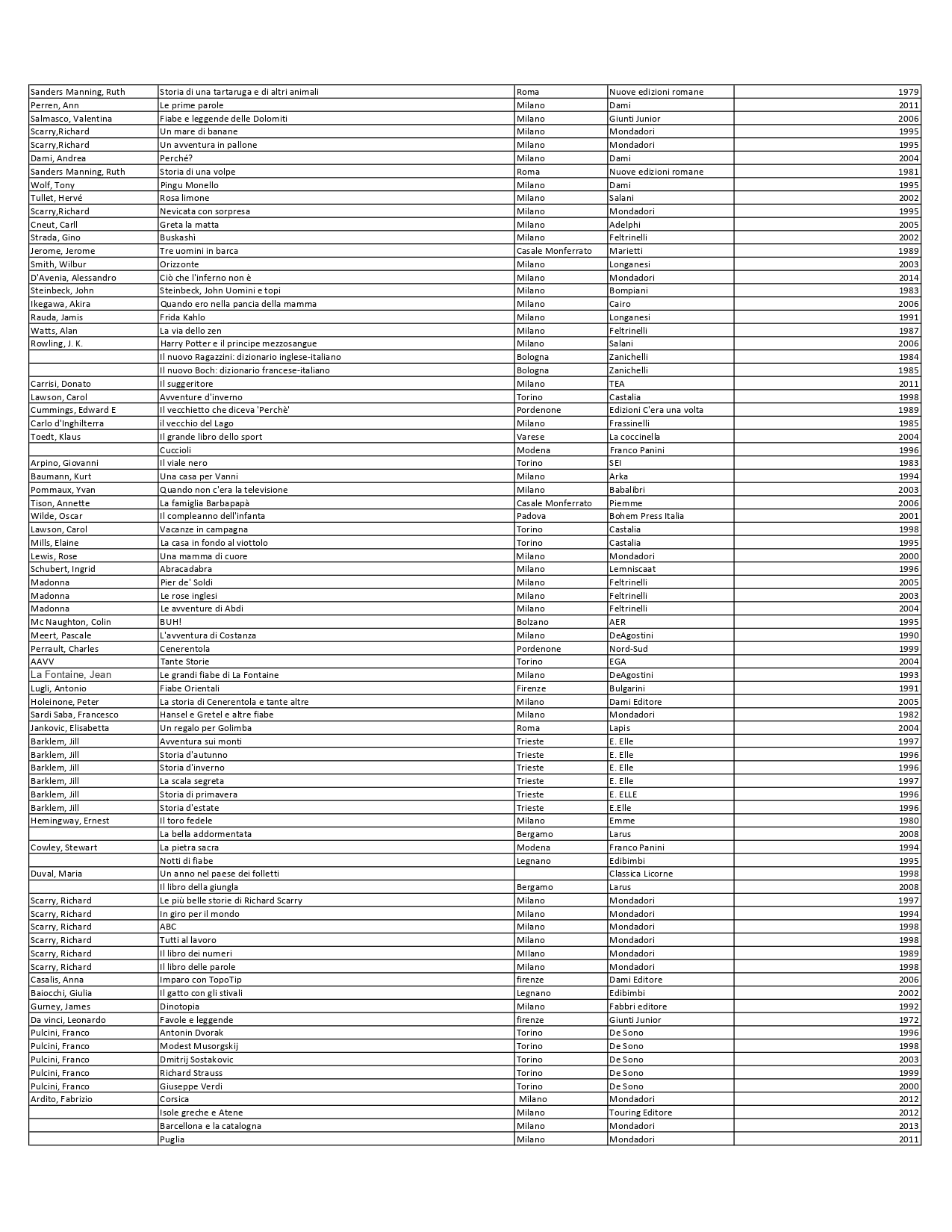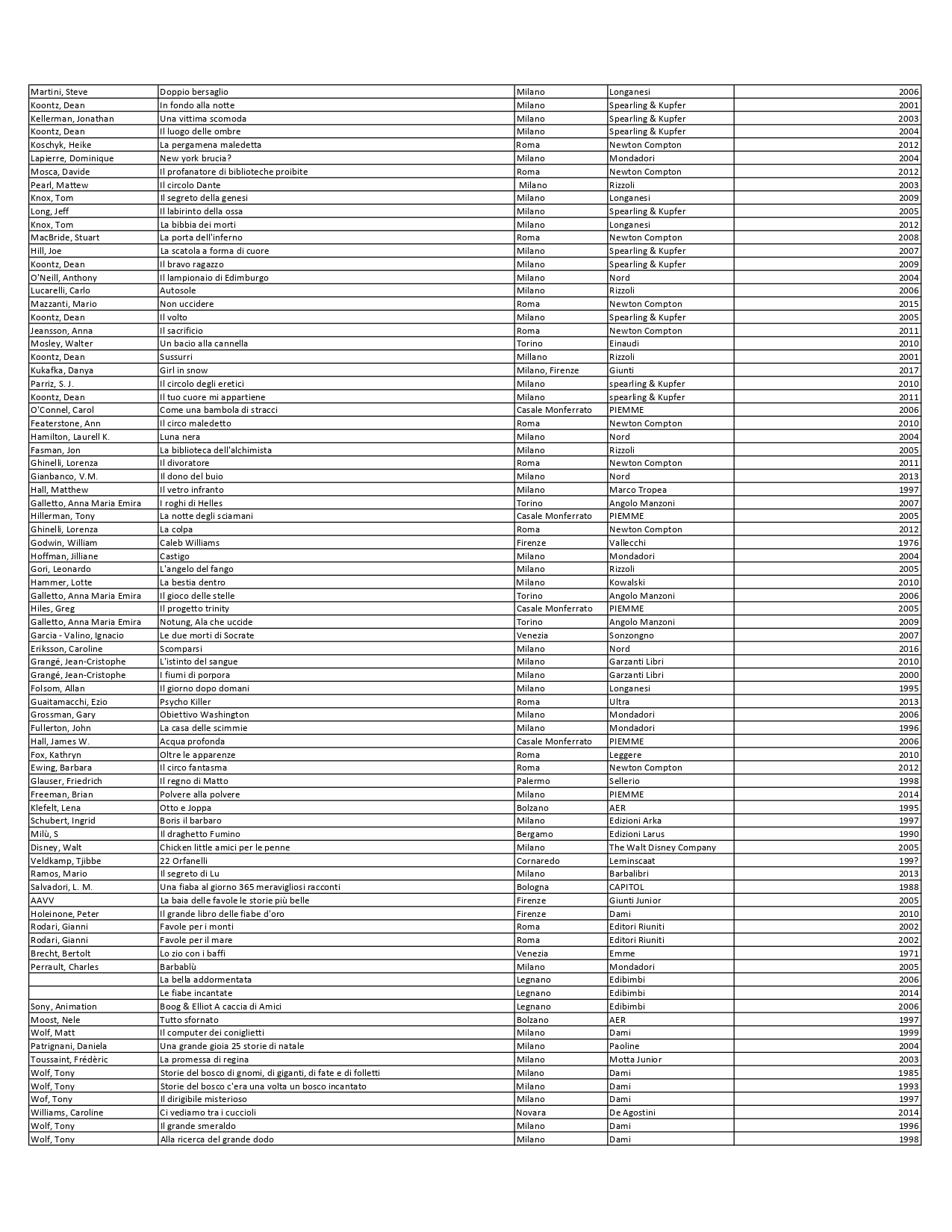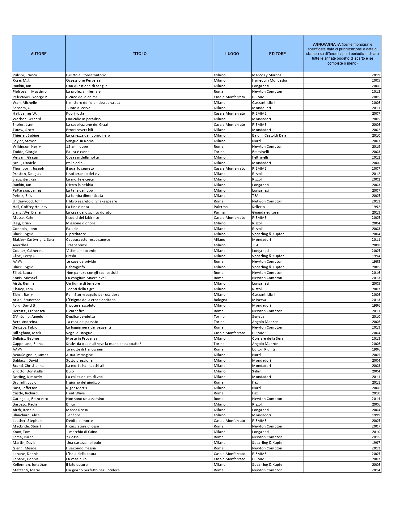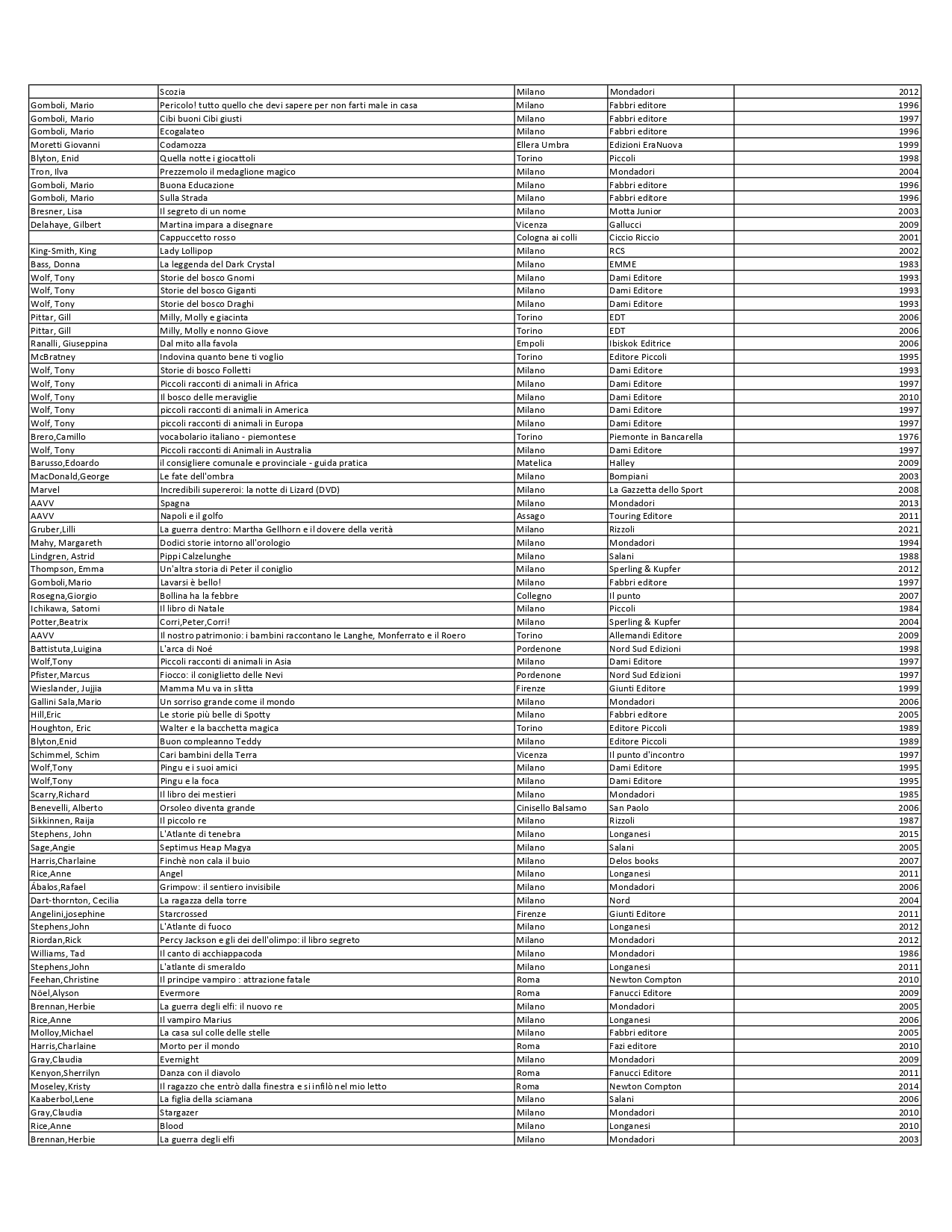 Elenco materiale bibliografico